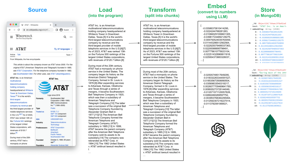 MongoDB Vector Search as the retriever to search for documents to use as context.