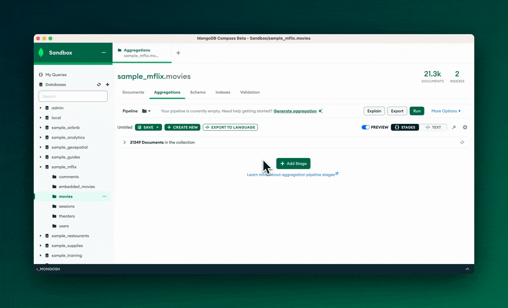 MongoDB Compass: Where developers can use natural language to compose everything from simple queries to sophisticated, multi-stage aggregations.