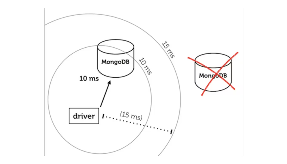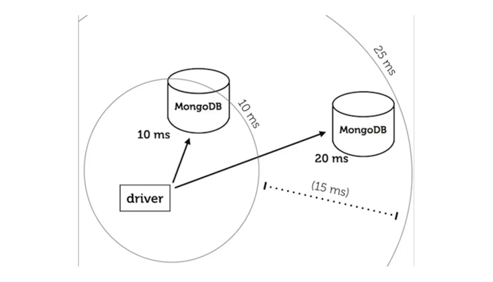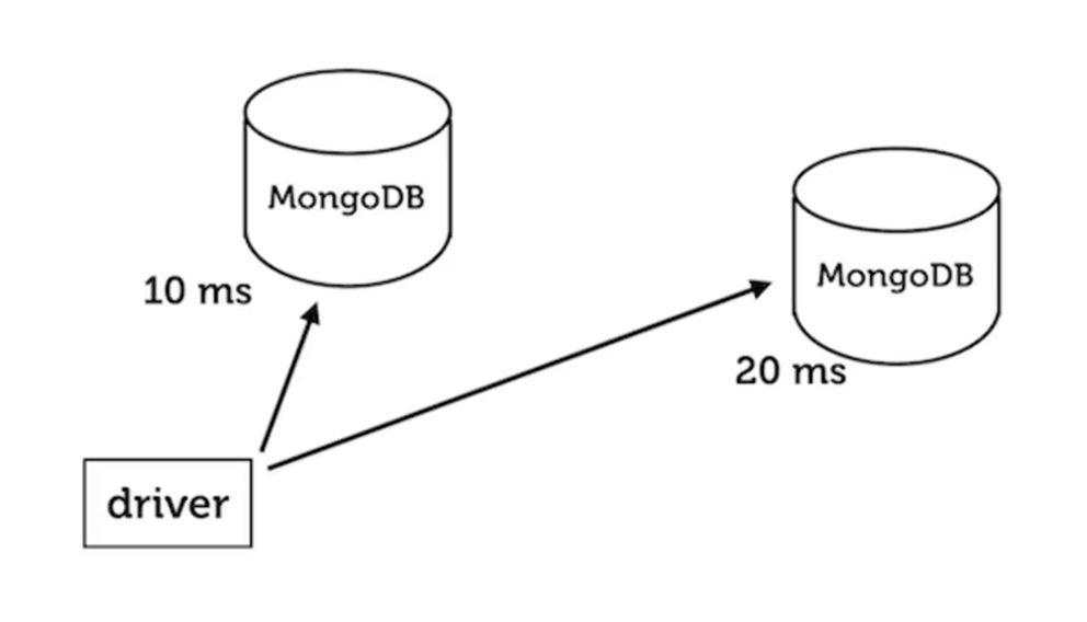 Say you want to load-balance your queries between two MongoDB servers in a replica set, but not if the network latency to one of them is much greater than the other's. We consider the scenario in which one of them is a 10 ms round trip from your application, and the other is 20 ms: