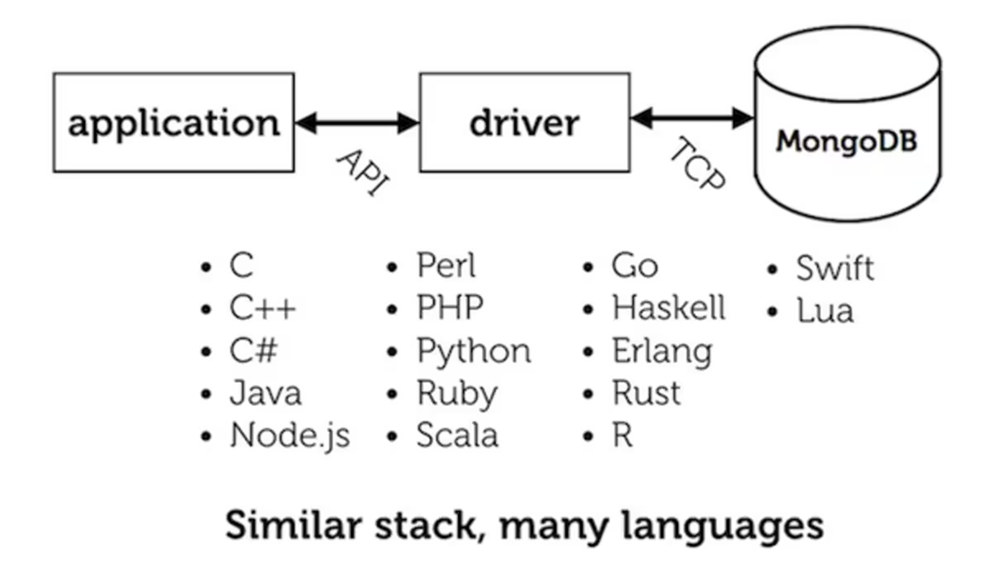 I hear you thinking: "How wasteful! All those drivers should just be thin wrappers of the C Driver." But the effort pays off: any programming language you might reasonably use has a language-native, idiomatic driver for MongoDB.