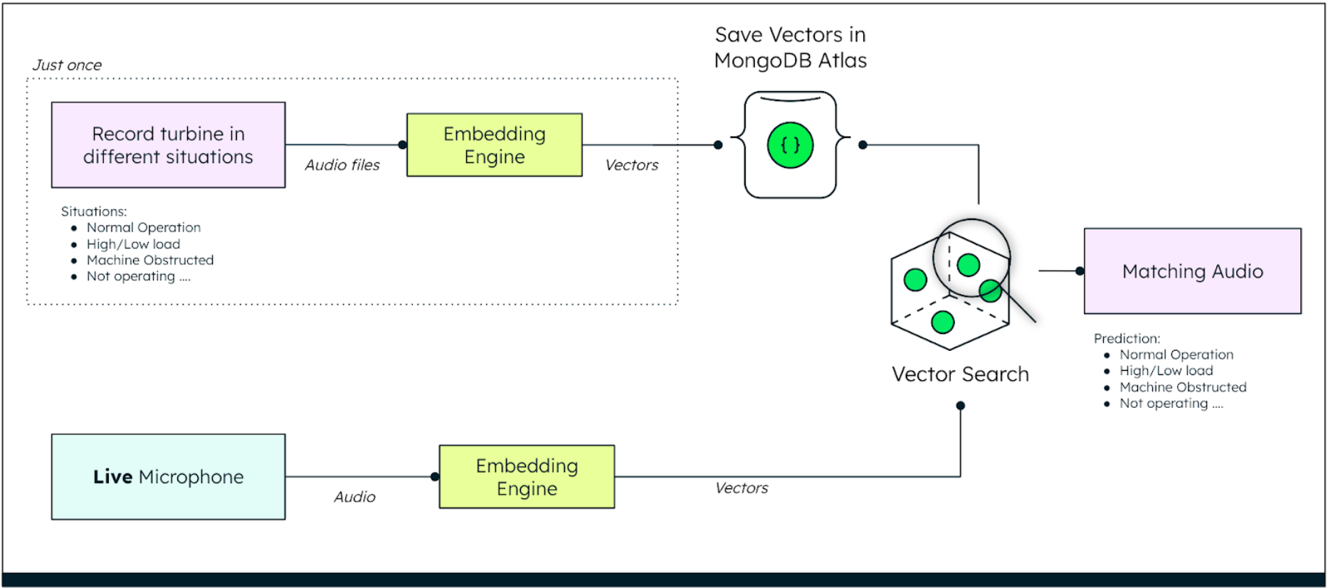 In this post, we will dig into an AI application use case for real-time anomaly detection through sound input, showcasing the impact of AI and MongoDB Atlas Vector Search for predictive maintenance of wind turbines.