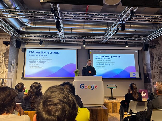 On October 15th, 2024, the Google Cloud GenAI and MongoDB event took place at Google Italy in Milan. Hosted by Mario Veltini and Luca Bianchi, the event was a collaboration between GDG Milano & GenAI Italy. Davide Malagoli from Google Cloud kicked things off with a talk on bringing gen AI pilots to production, followed by a demo on building with RAG in 5 minutes. Luca Bianchi, CTO of Neosperience, shared insights on leveraging MongoDB Vector Store and Gemini Embeddings in RAG architectures. The event concluded with a lively Q&A, networking session, and a great dinner!