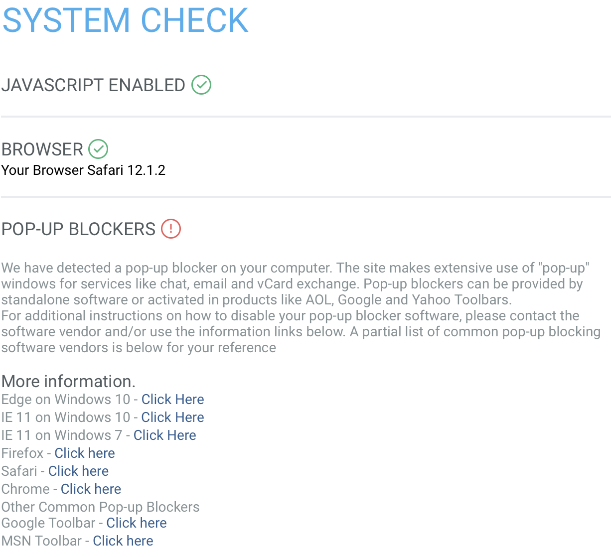 In the first browser please try clicking “Continue” under the section you’ve screenshotted. Popup blockers are integrated into all browsers so this is the expected result and once you click continue below this you’ll be in.