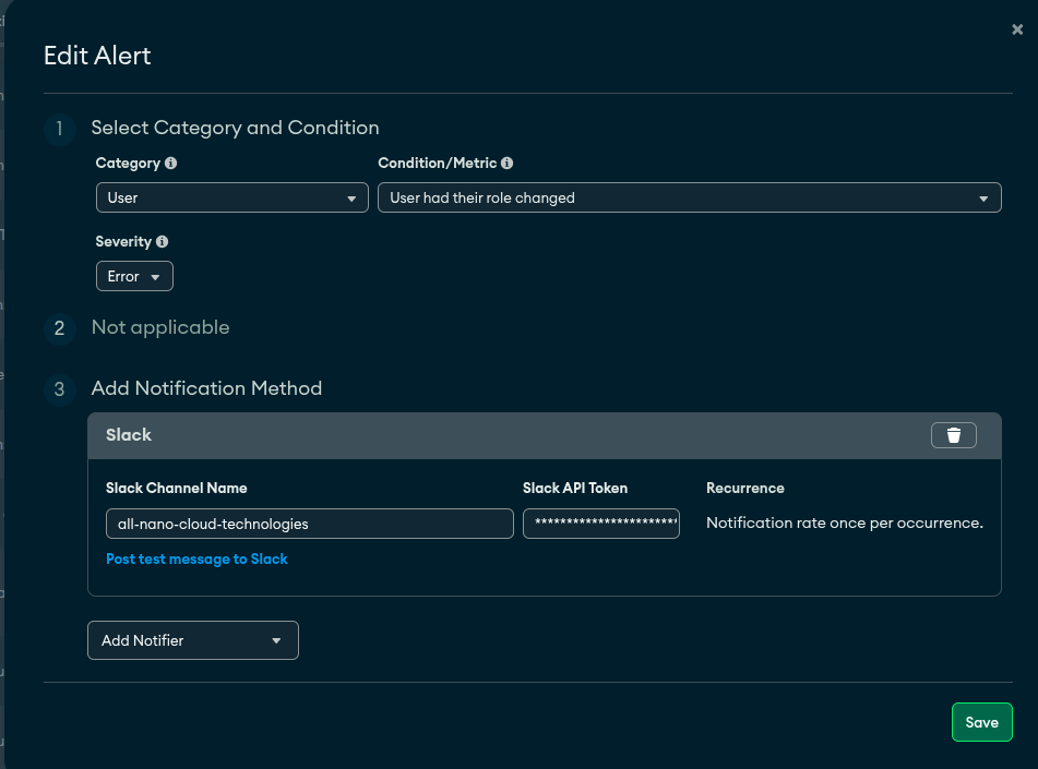 Expected: Because I set Severity = Error in the alert config, the webhook should indicate ERROR/CRITICAL (or otherwise expose configured severity), so downstream systems can escalate.