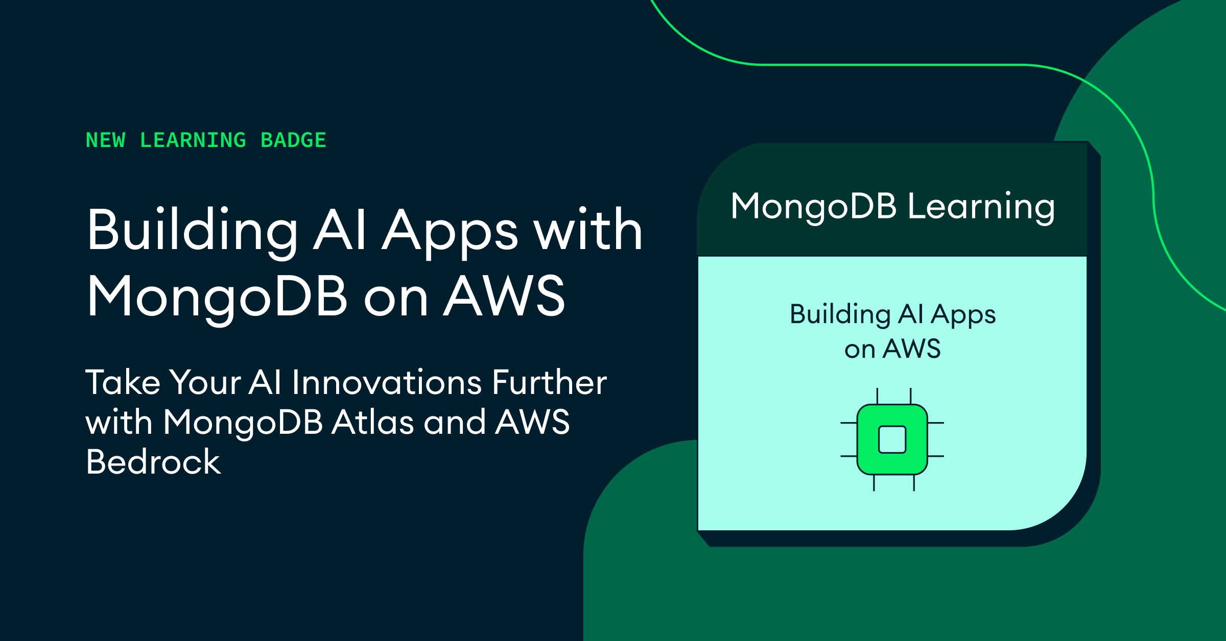 Learning Badge! This digital credential validates your knowledge of developing AI-powered applications using MongoDB Atlas Vector Search and Amazon Bedrock via AWS. Register here: MongoDB Courses and Trainings | MongoDB University