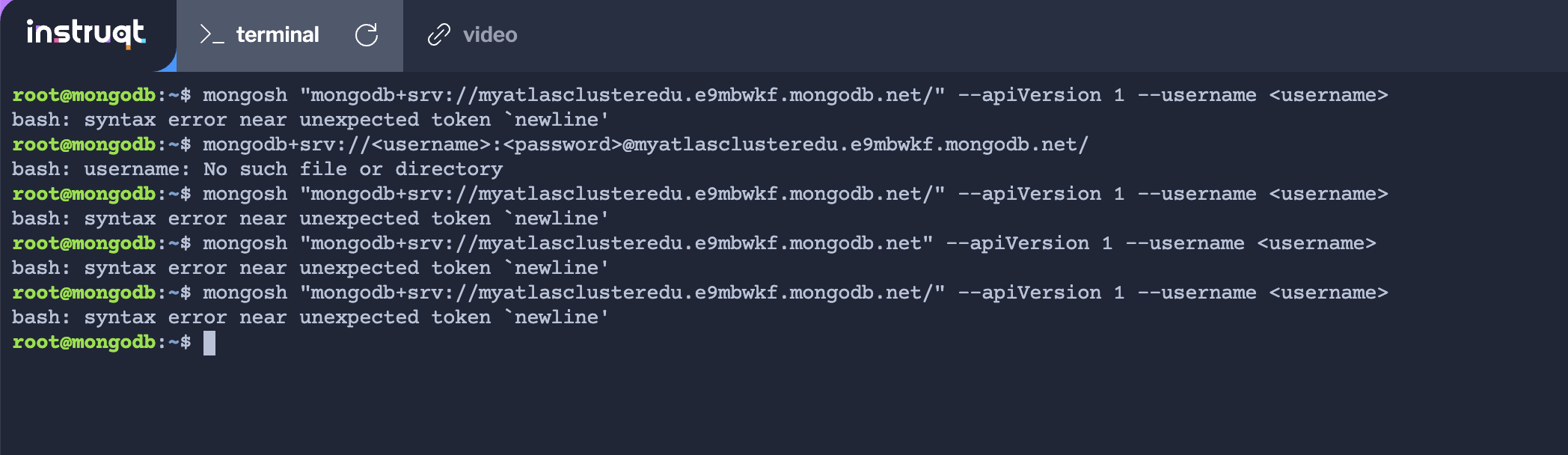 I was following the exercises just fine until I go to LESSON 2: CONNECTING TO A MONGODB ATLAS CLUSTER WITH THE SHELL