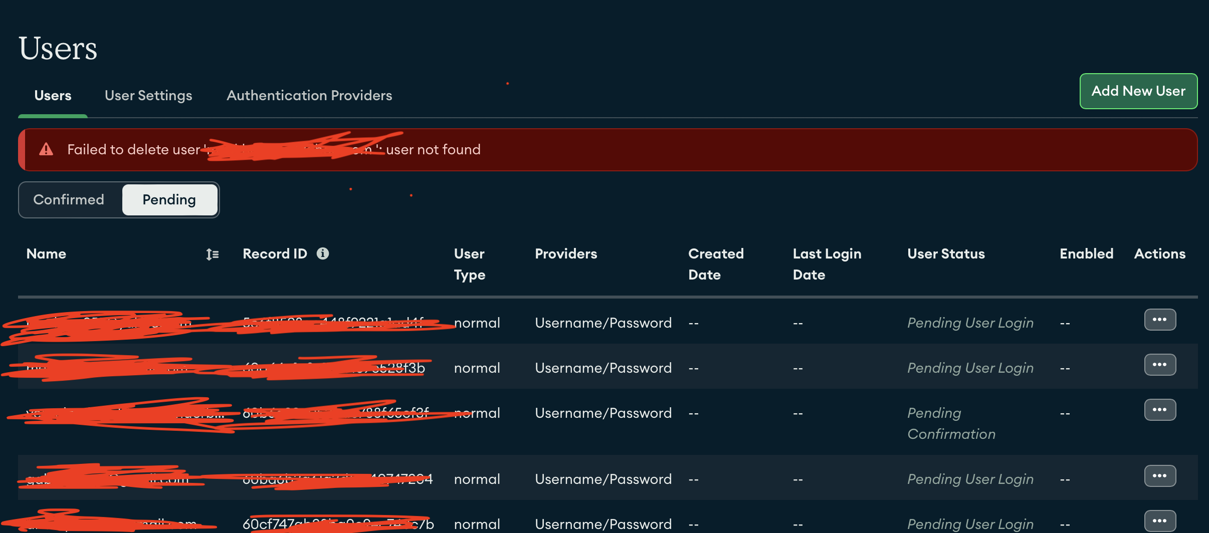 So I have a bunch of pending and unconfirmed users in the App Users section of my app. But I can’t seem to delete them. This is under the Pending tab.