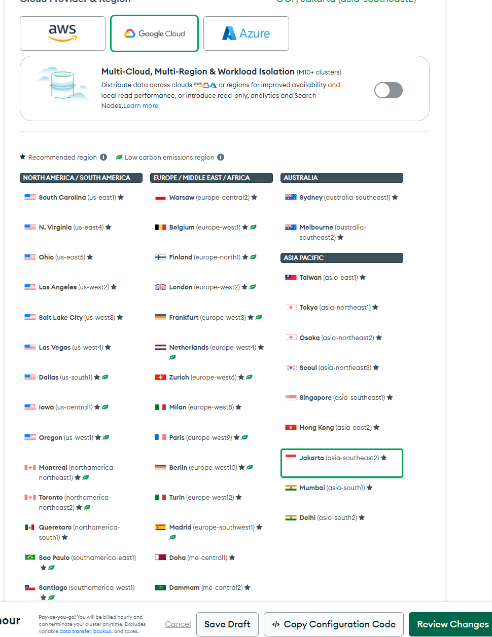 I noticed there’s an option to edit the cluster configuration and change the cloud provider and region directly.