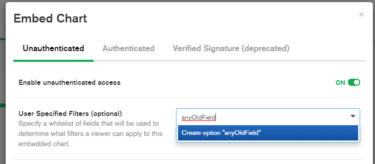 tested this by adding the filter value I use from embedding as an option. There is a difference, instead of displaying an error on these graphs I now get the title of the graph, but no graph. Tested it with two graphs that have the date field present by default, added the date as user specified filter on the third.