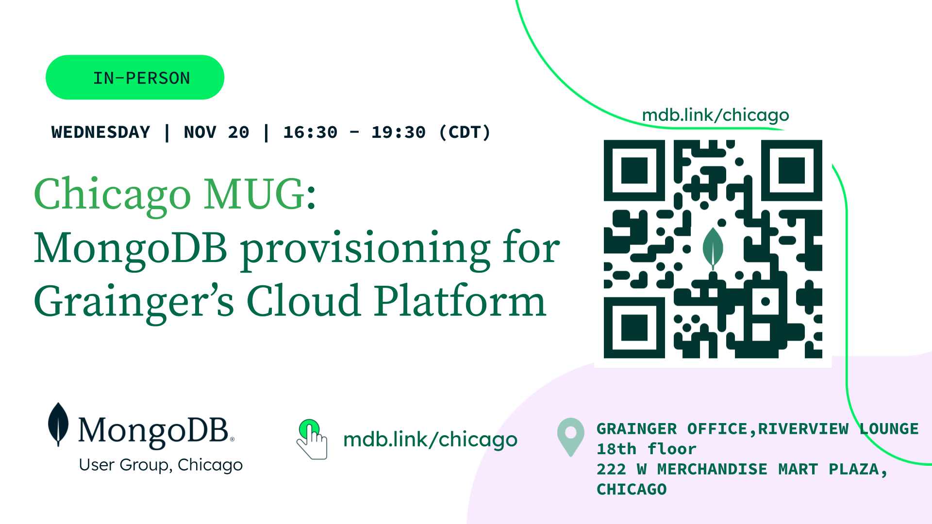Chicago MUG is excited to organize our Nov 2024 event at Grainger, featuring a presentation on how Grainger automates provisioning for MongoDB applications in their cloud platform.