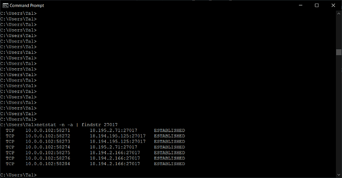All the above text about have to open dynamic ports to established an outgoing connection to port 27017 shows a lack of networking knowledge. The port that needs to be open is 27017. Do the same netstat/findstr with https. You will see a bunch of 10.* dynamic port ESTABLISHED to what ever IP:https web site you have. ProtonVPN does not open each and everyone of what you call dynamic port, it opens https.