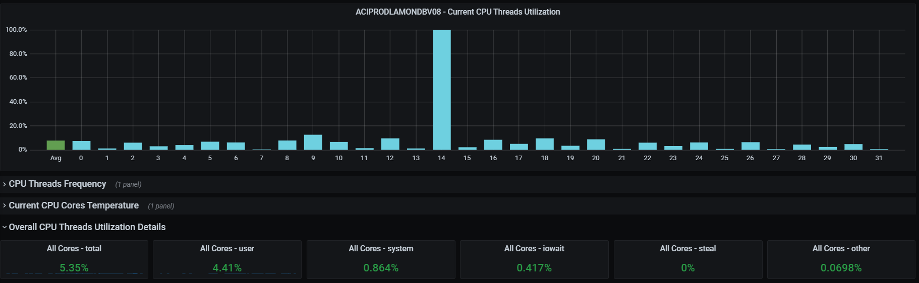 found Overall CPU utilisation for all cores is average 5%-6% . One of the cores might have high utilisation at that point.