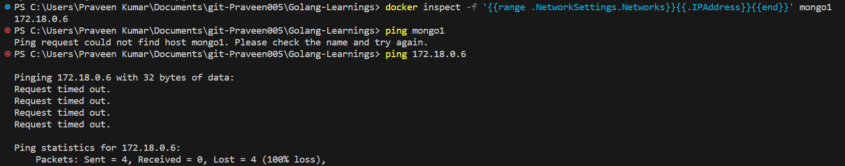 “Ping request could not find host mongo1. Please check the name and try again.”
