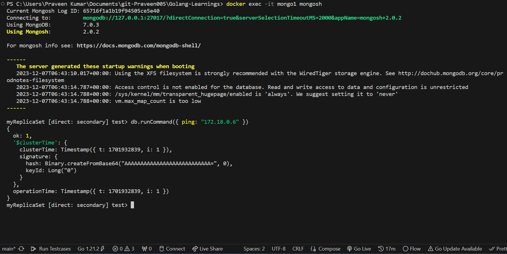 readConcernMajorityOpTime: { ts: Timestamp({ t: 1701895185, i: 1 }), t: Long("34") },