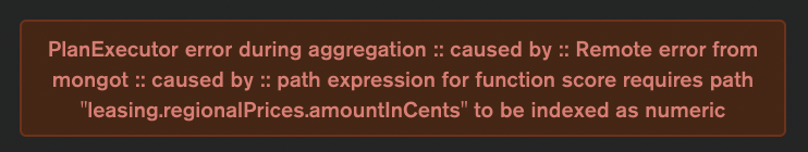 After setting up the index, I can query leasing.regionalPrices using the embeddedDocument query, but when I use the embedded score modifier on a sub-field of the embedded documents: