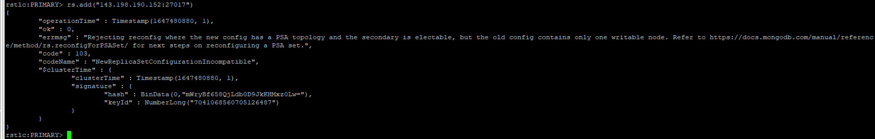 What is your current setup? Please follow the link from your error message Rs.reconfigPSA