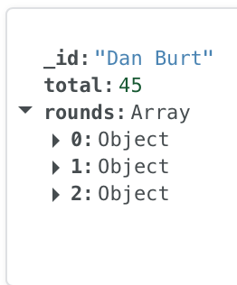 Tiger may have multiple documents, for multiple rounds that I want to sum the total, but I also want to show all the holes (iterate over the holes sub-array).
