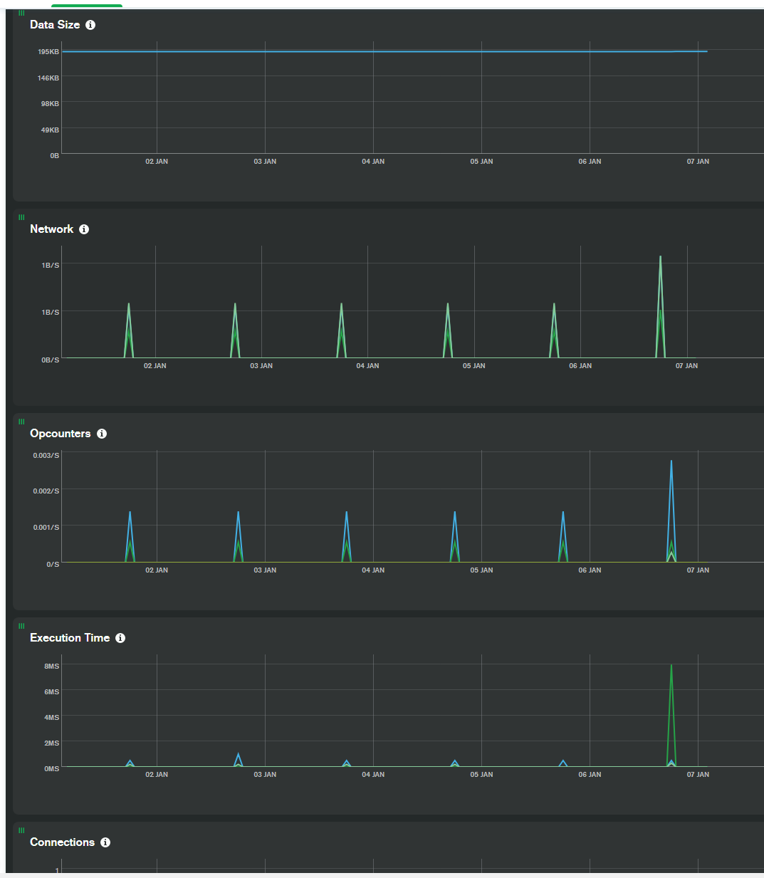 I have a serverless instance that doesn’t even have a single megabyte of data in it. Most days, there is not a single write action taken, and there is only a single read operation done. This is clear from the activity graph I have shared below.