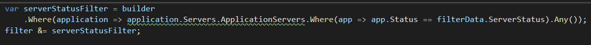 So I am not able to filter a multilevel array using .Net builderFilter. I would like to filter only the status of the applicationServers array