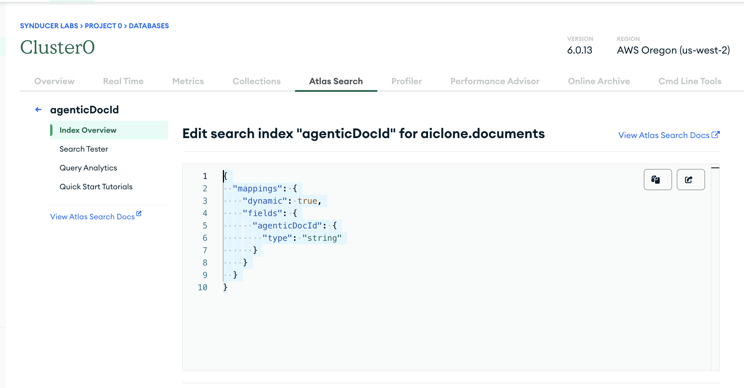 Atlas Cluster > Atlas Search > Edit Search Index ‘default’