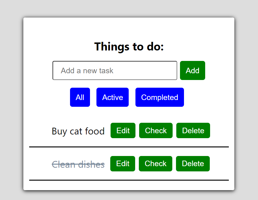 -Show active tasks: The user can filter to show only tasks that have not been completed yet (tasks that are not crossed out)