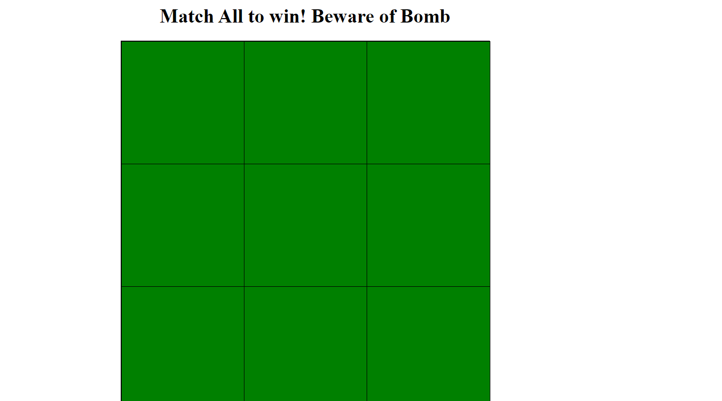 To Sharpen my JavaScript skills ,I made a matching tile game. How it works is that the player has 9 unknown tiles in front of them. There are 4 pairs of animals to match (lion,dog,eagle,squirrel) and one bomb. The player must match the same animal picture. If the player miss-matched then their score will lose points. If they click on the bomb then they automatically lose. What’s really cool is that the tiles are organized randomly every game session.