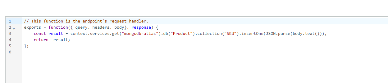 In Function, I am using simple InserOne to insert the Document.