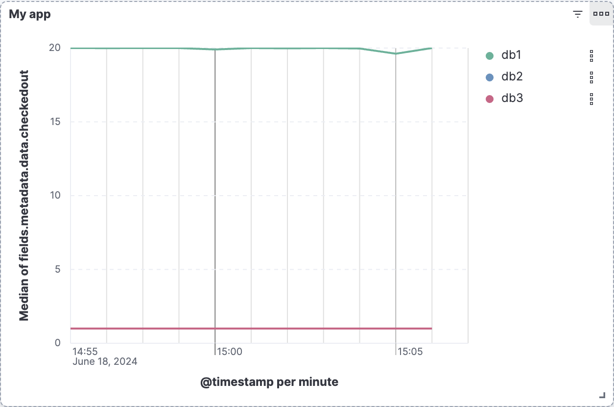 According to this graph, we can see that db1 has a median of 20 connections opened constantly (out of 20) while db2 and db3 has a median of 1 connection opened (out of 20).