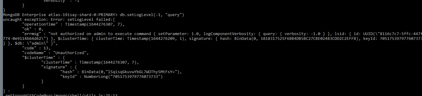 Ive been trying to set the logging verbosity level for Queries but am running into an issue saying im not authorized but I have atlasAdmin privileges. Any idea why? Thanks