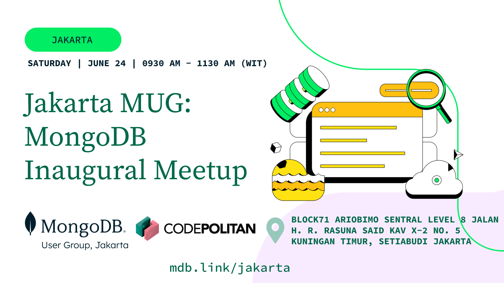 Jakarta MongoDB User Group is thrilled to announce our first meetup in collaboration with Codepolitan on June 24th.