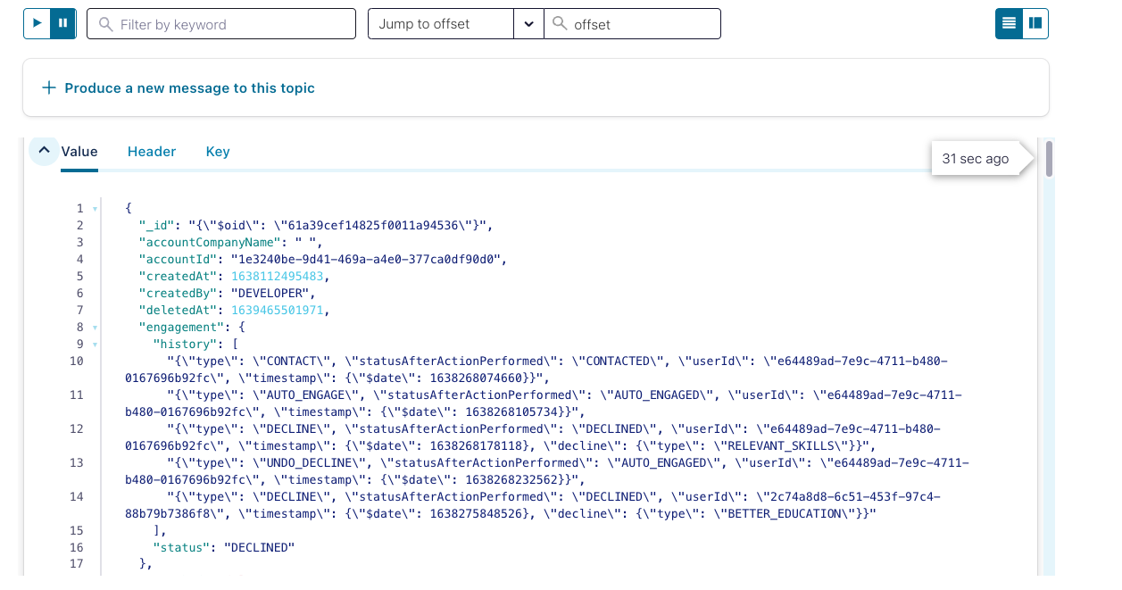 I’m using JSON as the output format, however, when fetching messages from the topic, some fields in the JSON are being stringified and not being passed as an object. See attached screenshot: