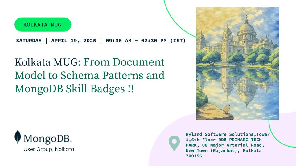 We’re excited to welcome the MongoDB community for a vibrant and insightful day at the Kolkata MUG Meetup happening on Saturday, 19th April 2025, at Hyland Software Solutions, Tower 1, 6th Floor, RDB Tech Park, New Town, Kolkata.