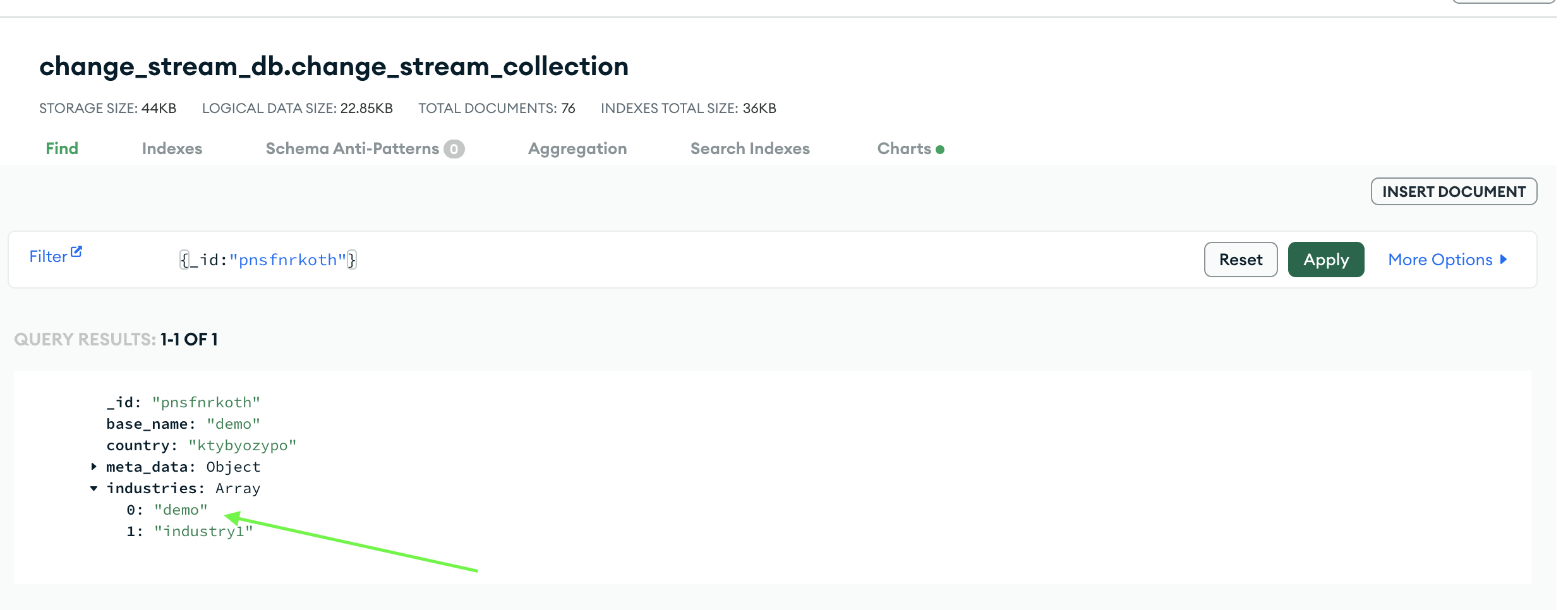 change_stream = client.change_stream_db.change_stream_collection.watch() picks up updates to nested/complex fields (meta_data.status, industries)