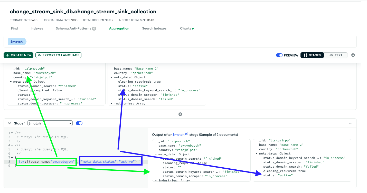 . There must be something within the pipeline filter for those nested fields. What’s strange is when i don’t have the pipeline filters, and just have the change_stream = client.change_stream_db.change_stream_collection.watch() It has no problem picking up a change event when an update to the meta_data.status field happens.