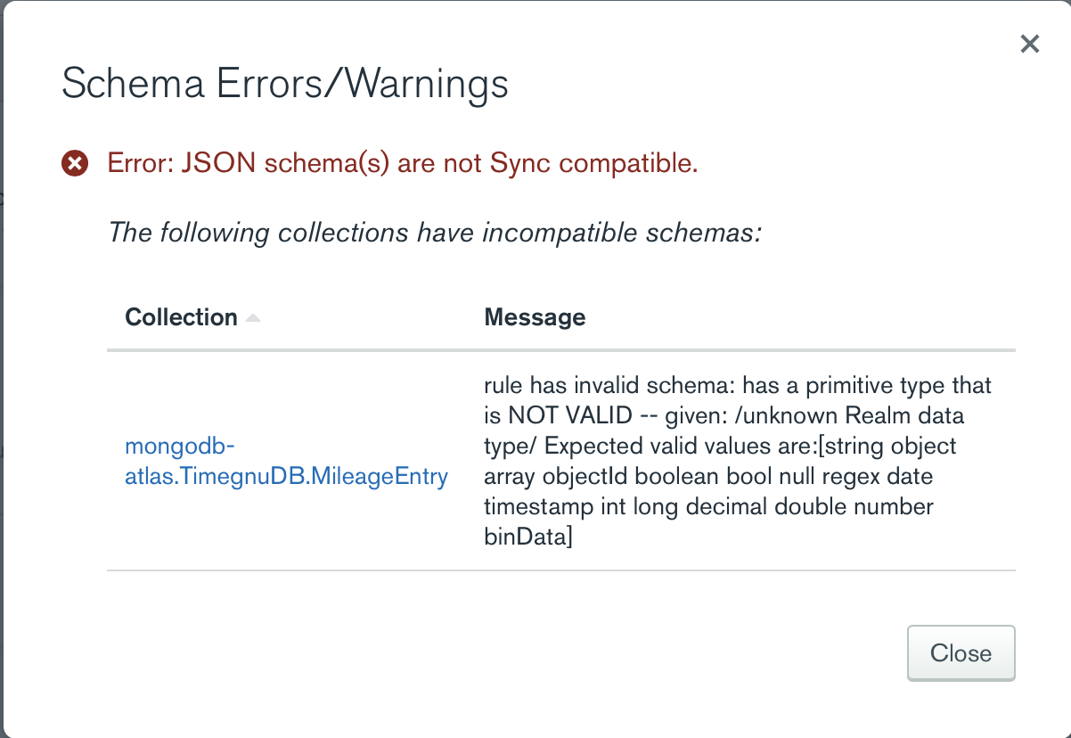 OK I have removed the system tables from the schema and now get past the schema validation and the schema is now appearing in MongoDB Atlas but there appears to be no data in Atlas.