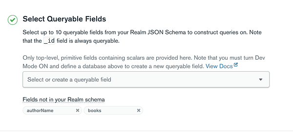 If you choose development mode, you can create fields that are part of your client schema. For example, for Book and Author model, I created the following queryable fields