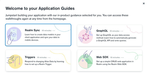 When you have data in Atlas already or can load it easily, Realm will generate your client data models for you. There is also a Sync guide available on your application Dashboard page. The guide explains how to configure your collections for Realm Sync