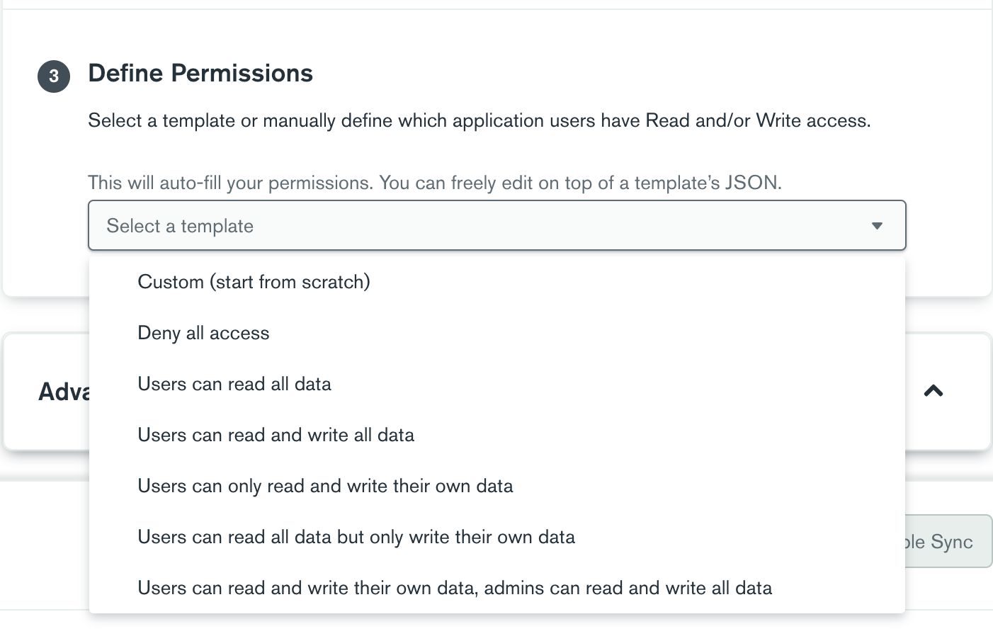 When you set up permissions on the backend, you can choose from a provided template or design your own permissions from scratch.