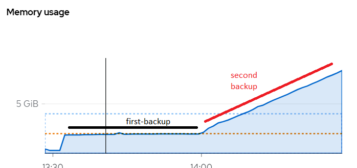 - First backup is taken, and during the entire backup the 2GB Memory is not exceeded