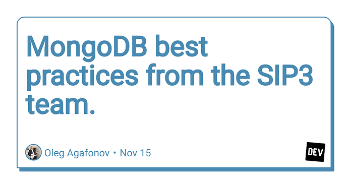 User agafox and the team at SIP3 has kindly shared the best practices they’ve learned for using MongoDB. Bookmark it: