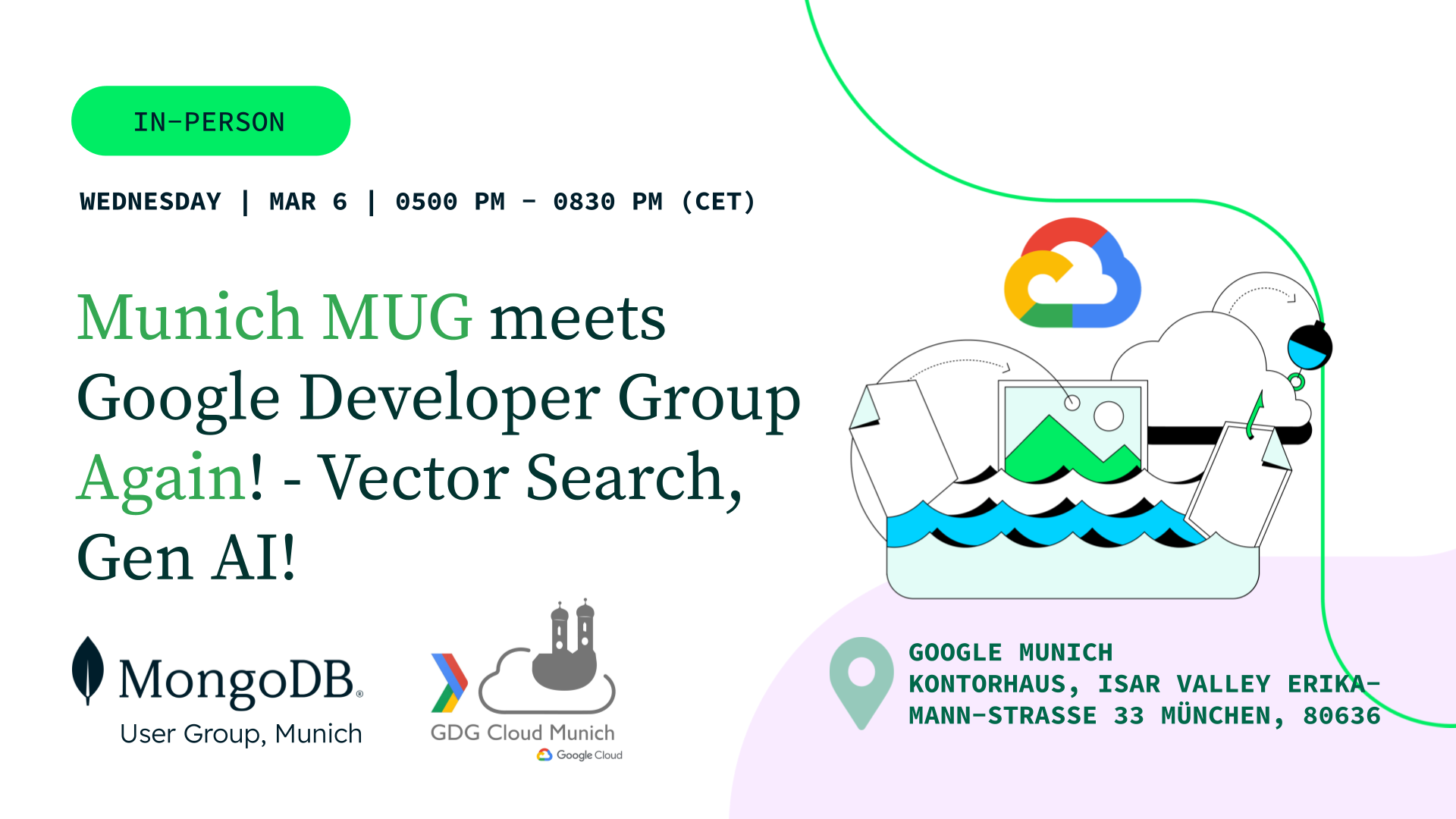 Munich, MongoDB User Group is excited to announce the next gathering with GDG Cloud, Munich :tada: