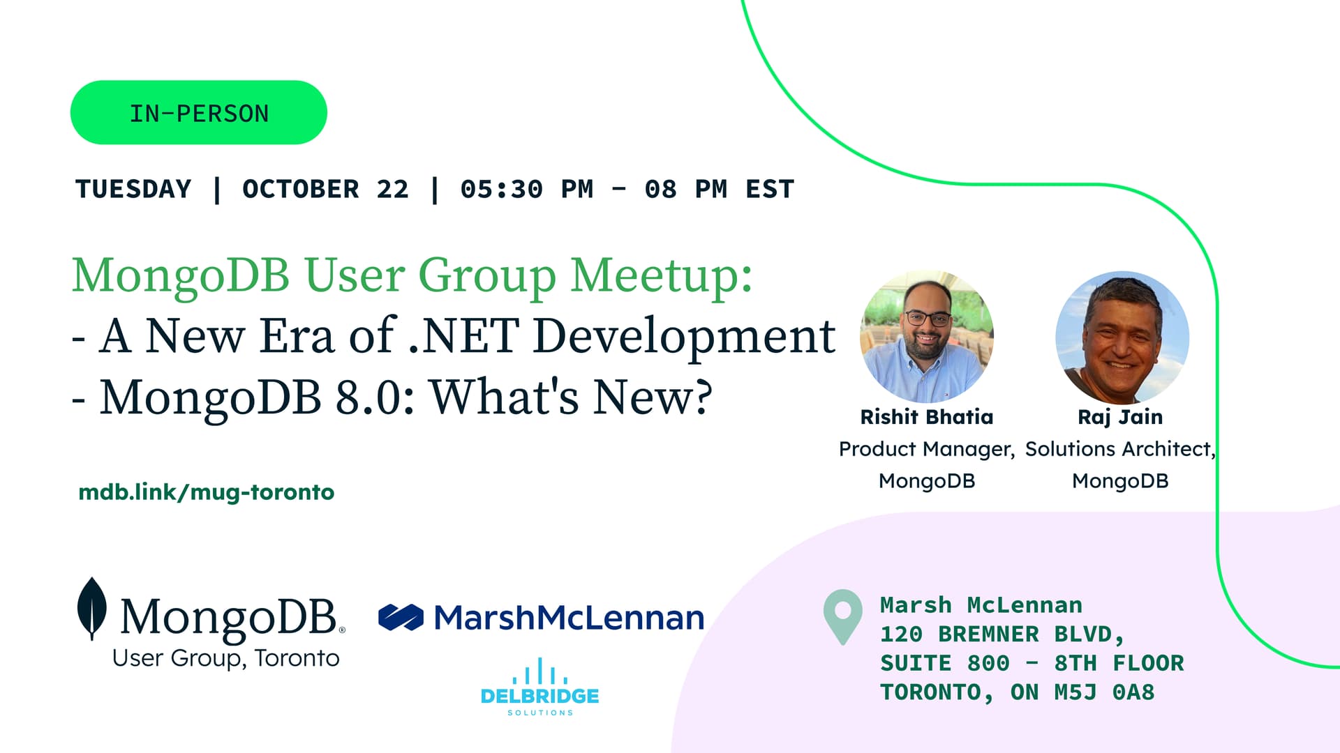 | 7:15 PM | Raj Jain (MongoDB): MongoDB 8.0: What’s New? |