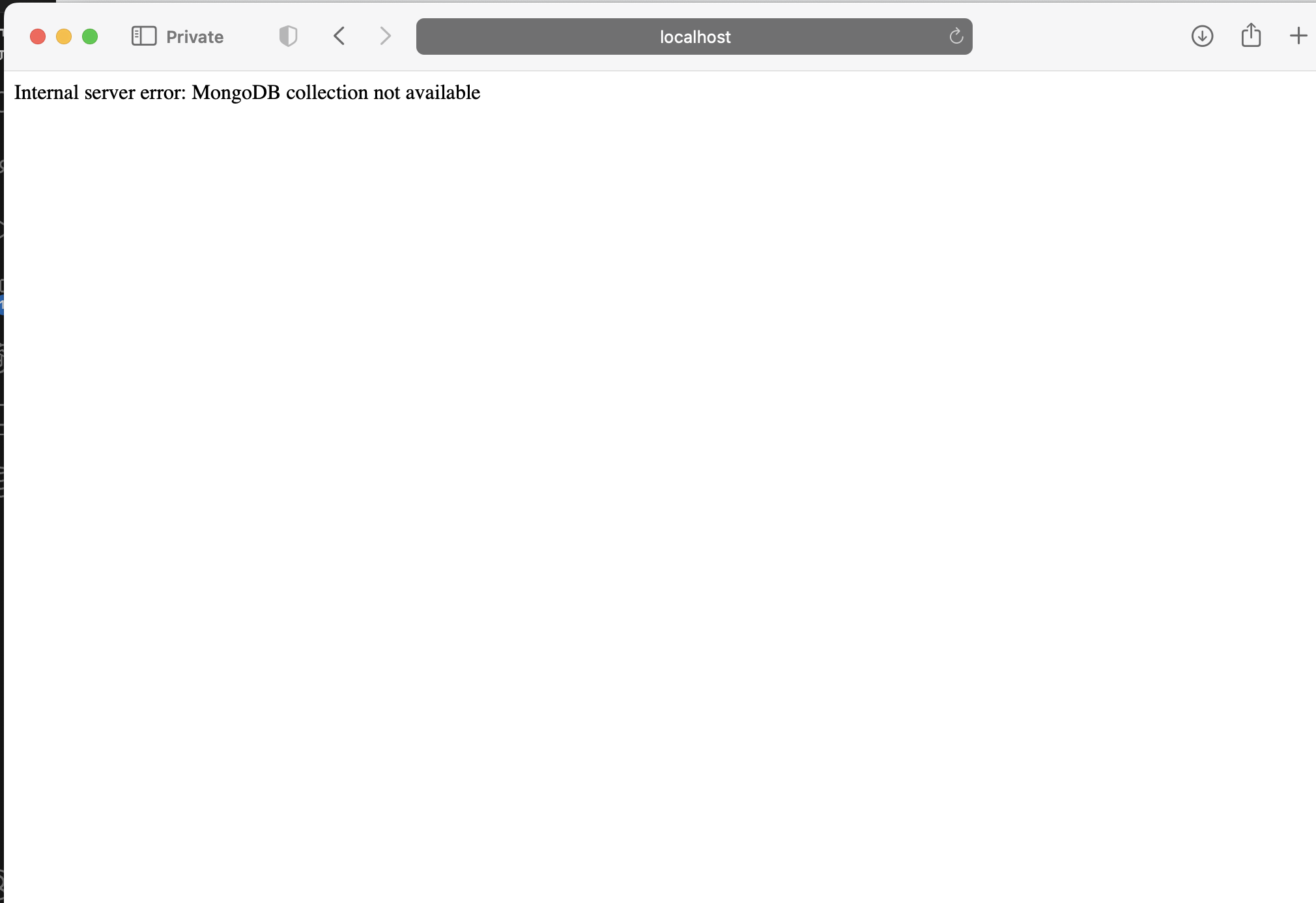 Hi everyone. II’d to to ask why my node.js can’t connect to mongodb. it shows “Internal server error: MongoDB collection not available”. Did I make mistakes on codes or something, Can anyone reach out for this problem. Thank you.