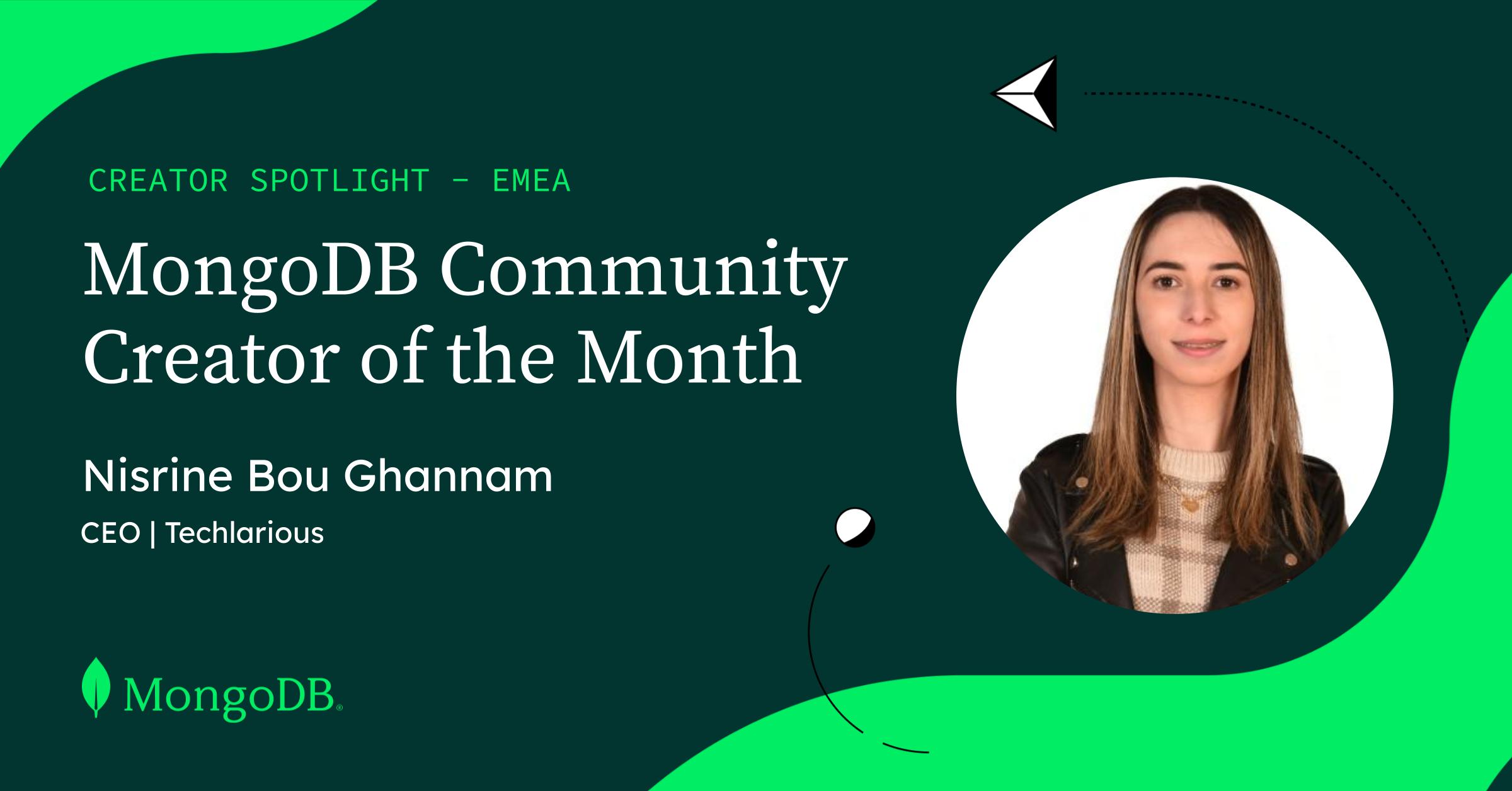 Introducing @Nisrine_bg, our MongoDB Creator of the Month !! She is the CEO of Techlarious and a passionate educator who has made MongoDB concepts accessible to developers throughout Lebanon.