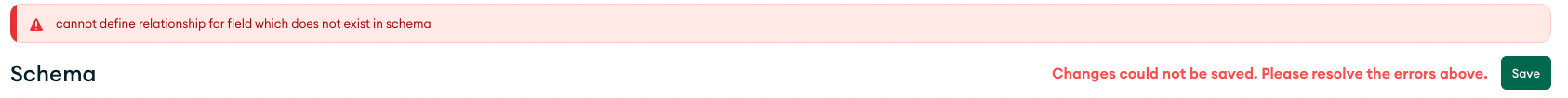 Error is the following: “cannot define relationship for field which does not exist in schema”
