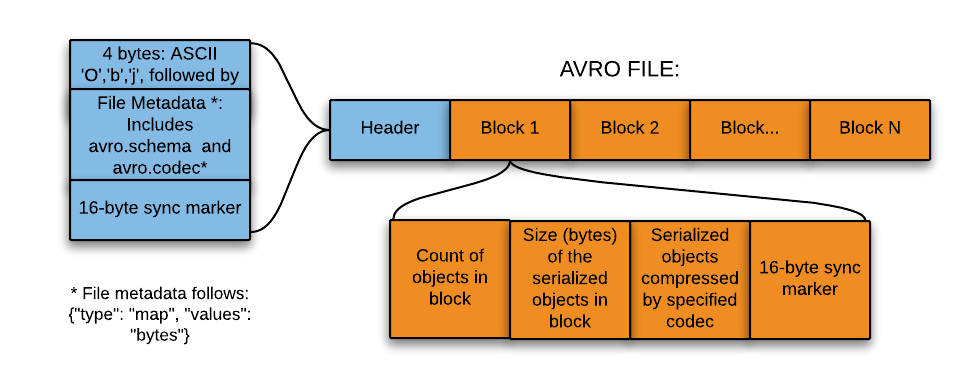 Avro: Avro is a row-based format. It stores data as binary and includes a schema in a JSON header. This schema defines the structure of the data, which helps applications parse and process the binary information efficiently. Avro is ideal for streaming and reduces storage by compressing the data.
