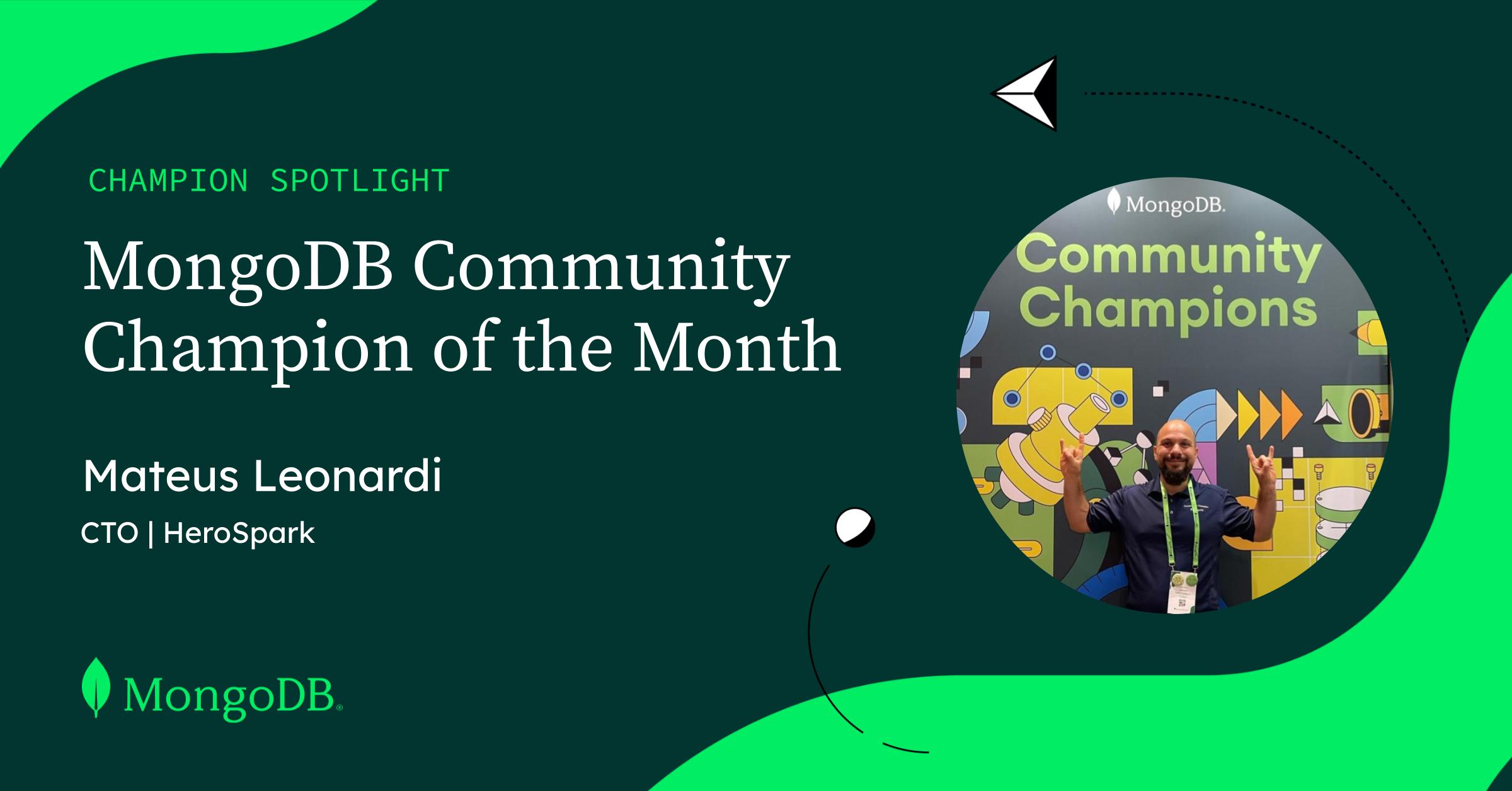 We’re proud to spotlight @Mateus_Leonardi today as our “Champion of the Month”. Leonardi is the CTO of HeroSpark, an exceptional community advocate for many years, and a MongoDB Champion for 1.5 years. He has had an extraordinary impact on developers and educators throughout Brazil.