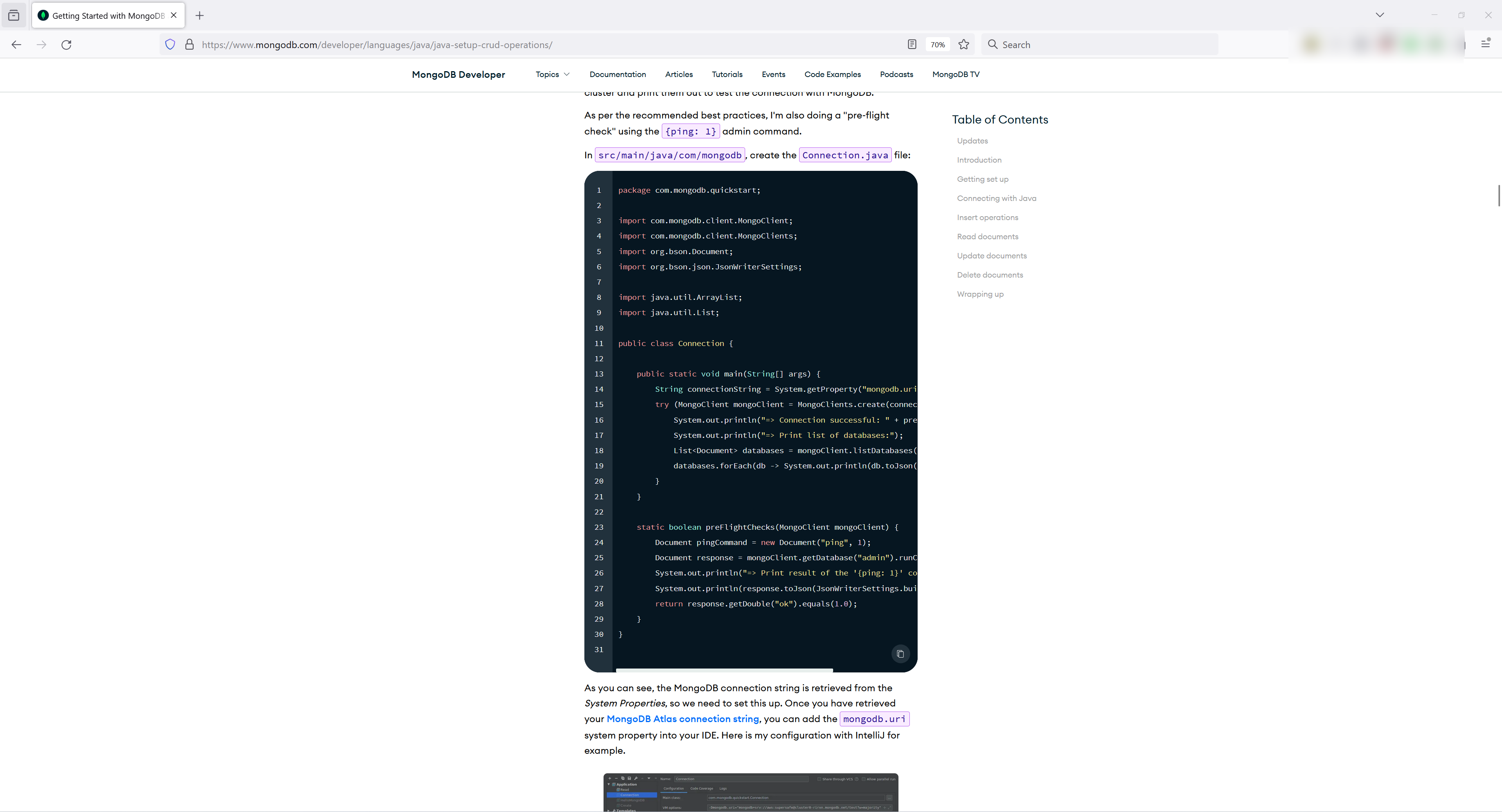 I was following this Java tutorial: Getting Started with MongoDB and Java - CRUD Operations Tutorial | MongoDB