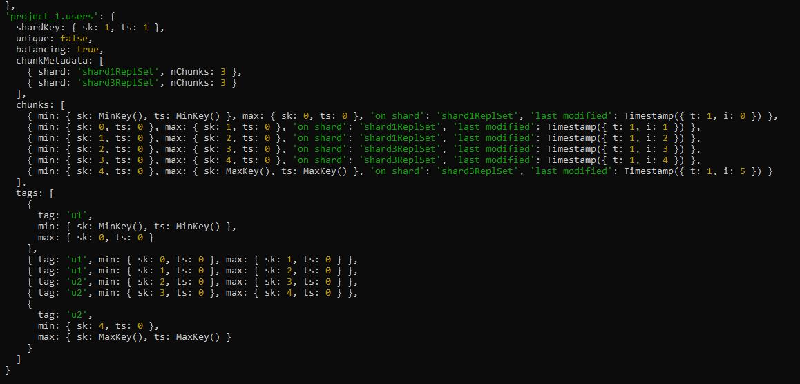 I create some tags and shard this collection on two shard servers. Everything looks as expected.