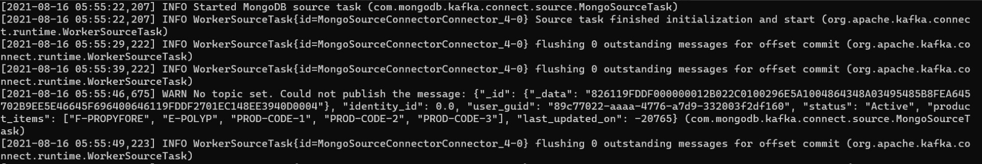 I get this message when I launch the MongoDB source connector and perform an update on source DB: